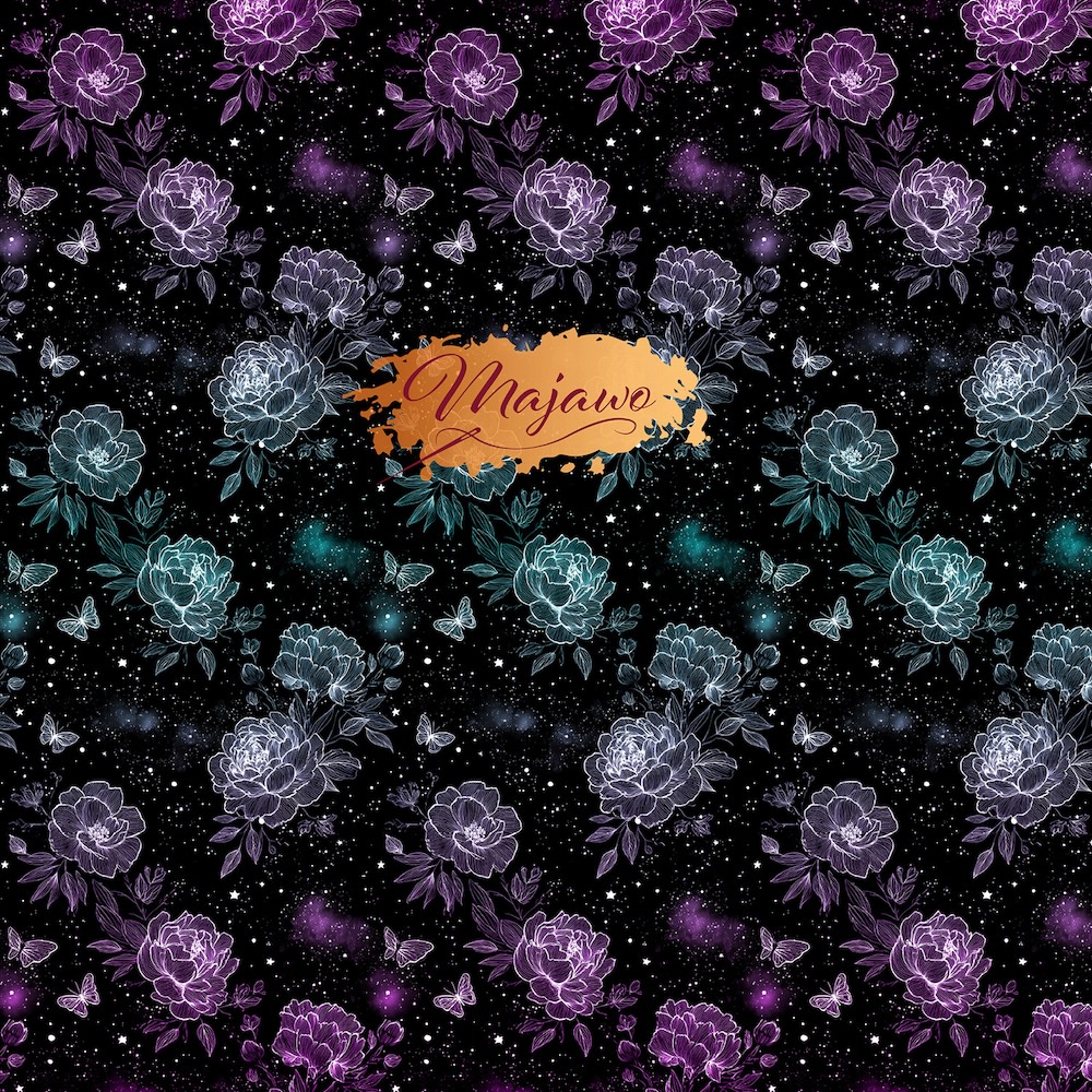 EP "Magische Blumen", türkis/pink, French Terry (Überbreite)