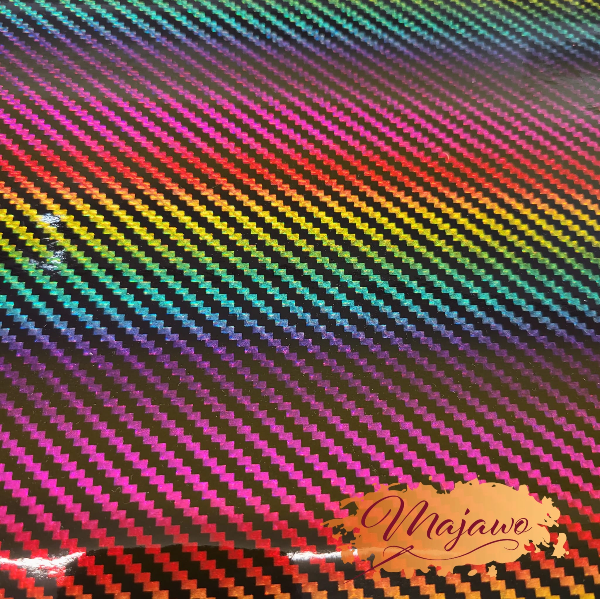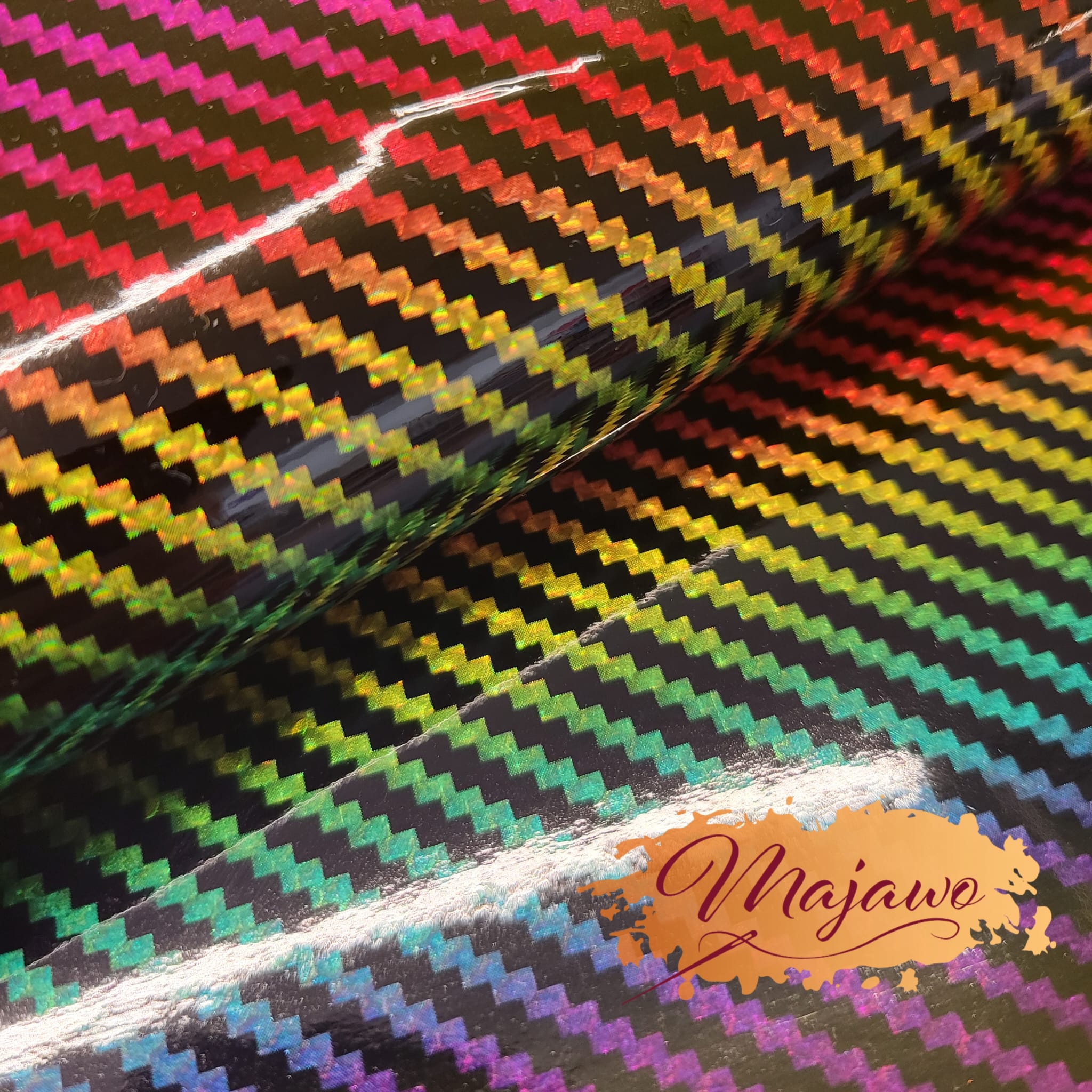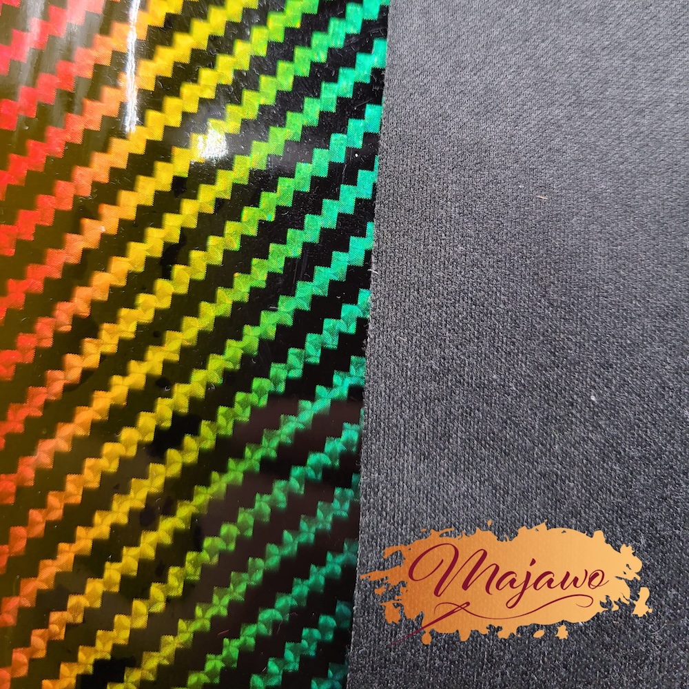 Dieses Kunstleder hat eine glatte Oberfläche und einen in Regenbogenfarben schimmernden Effekt. Es ist stabil und reißfest und eignet sich z.B. zum Nähen von Taschen und Portemonnaies.