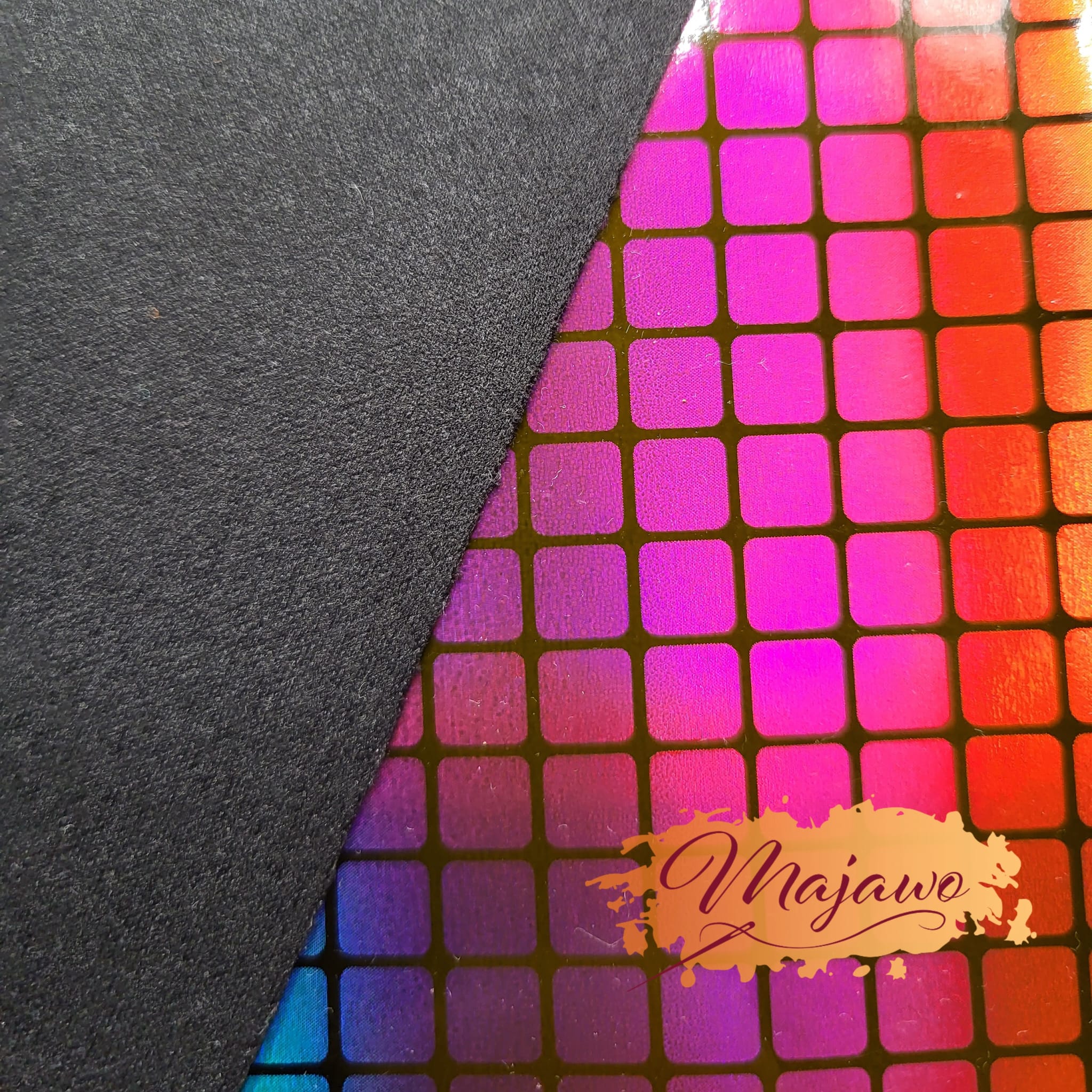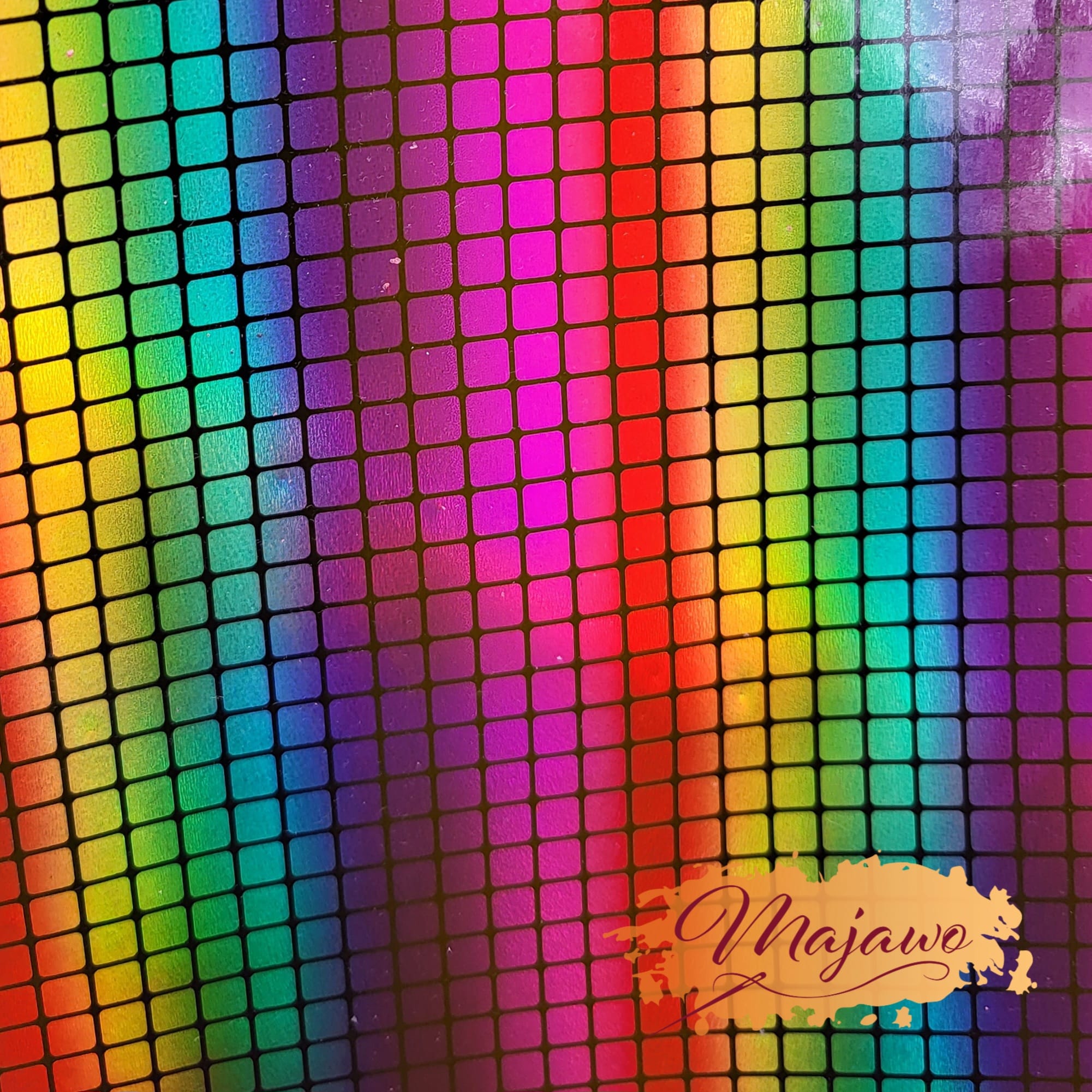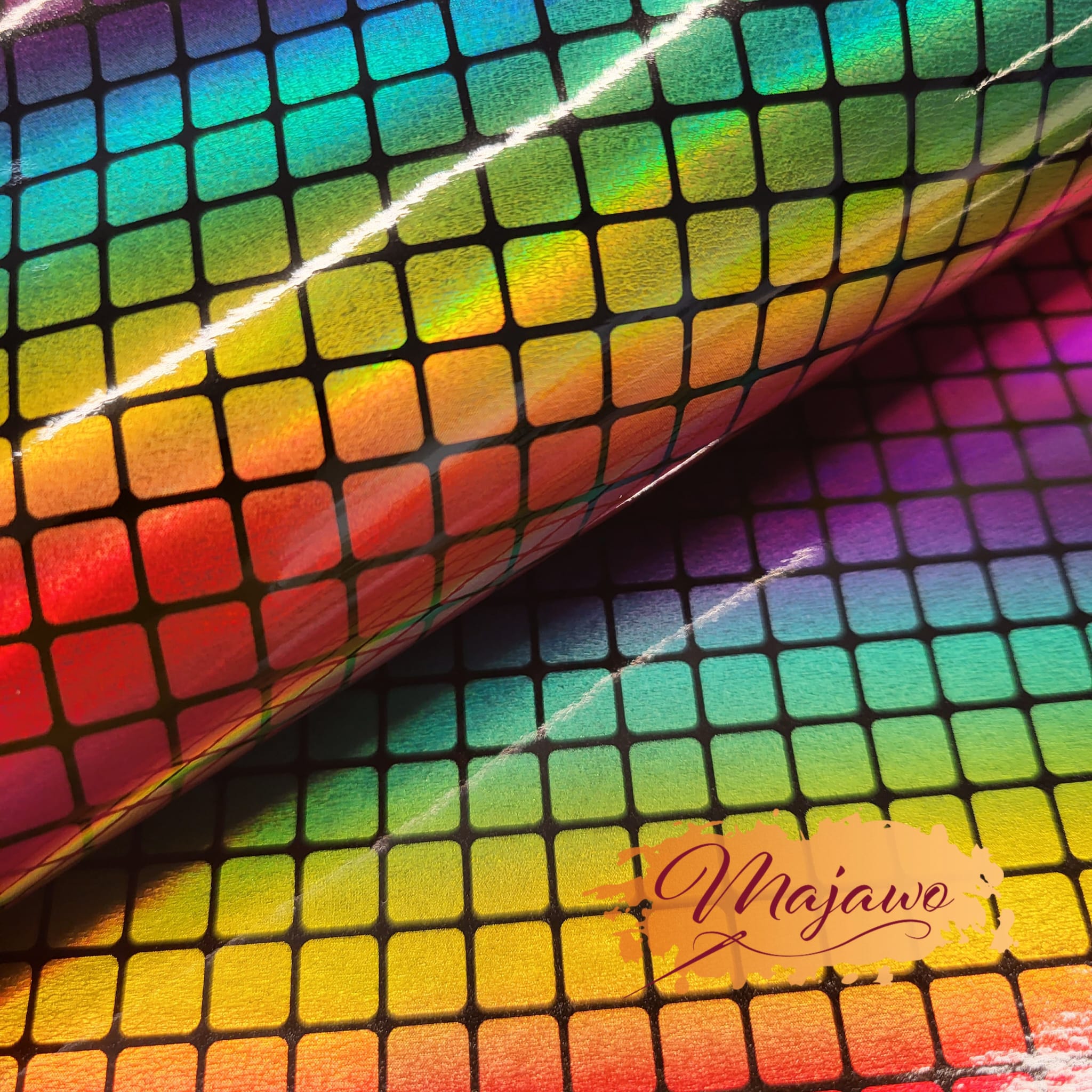 Dieses Kunstleder hat eine glatte Oberfläche und einen in Regenbogenfarben schimmernden Effekt. Es ist stabil und reißfest und eignet sich z.B. zum Nähen von Taschen und Portemonnaies.