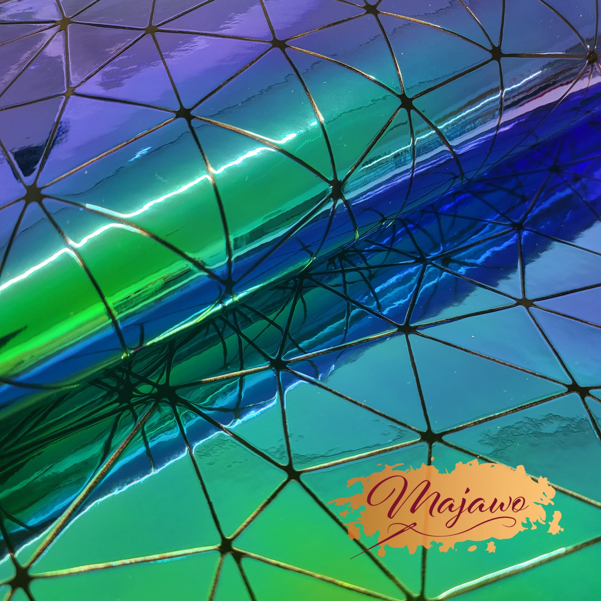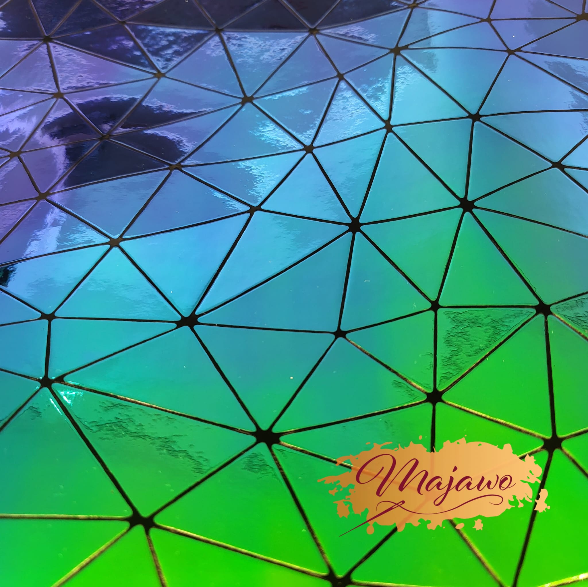Preview: Kunstleder, Nr. 9, perlmutt, Dreiecke, blau/grün, ca. 44x62cm