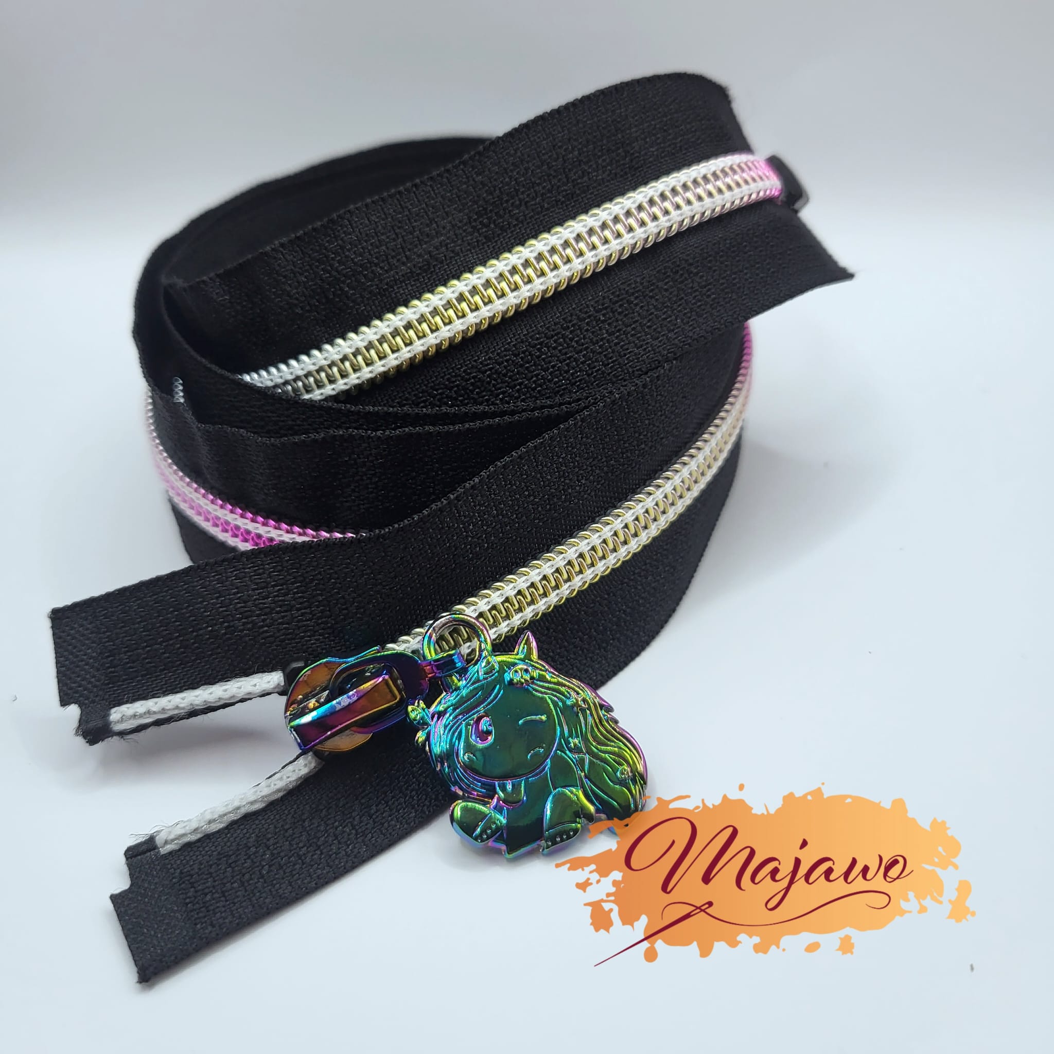 Teilbarer Reißverschluss #5, 80cm, schwarz/regenbogen "I Rock you - Einhorn"